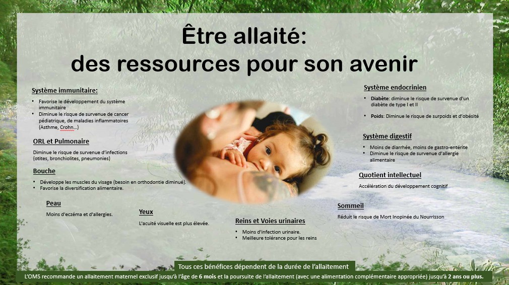 Voici quelques documents réunissant les bénéfices de l’allaitement maternel chez la maman et son enfant